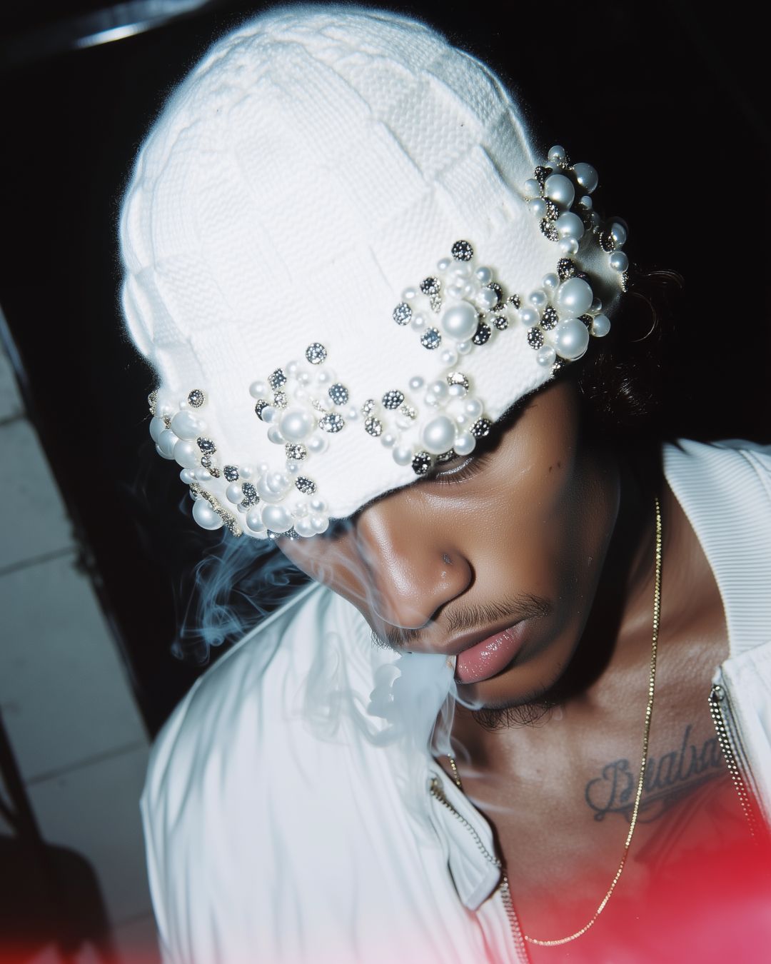 - Hand-embellished pearls and crystals on the brim